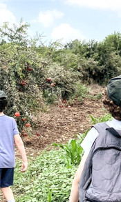 We went on a fruit-picking family trip on a sunny, end-of-the-summer, bright day.